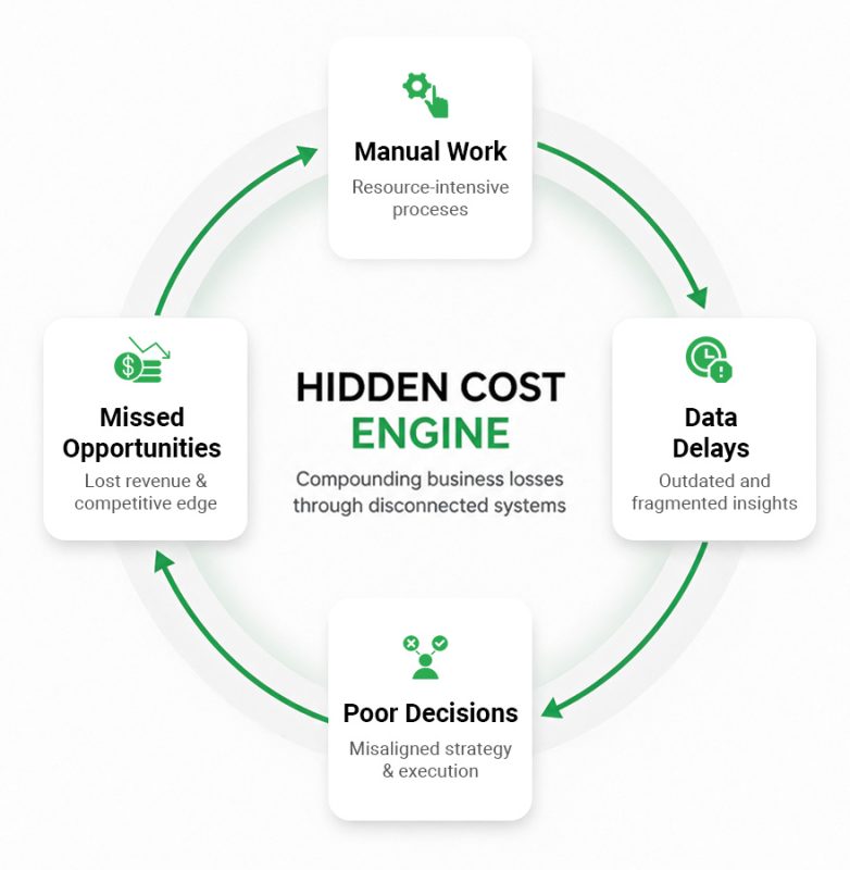 But here is what most SMBs underestimate: this is not just a productivity problem. It is a decision-making problem. Fragmented data means leadership is always operating on a slight delay. By the time the full picture arrives, the moment to act has already shifted. In a market where decision speed now separates leaders from laggards, that delay compounds into something far more expensive than the cost of fixing it.