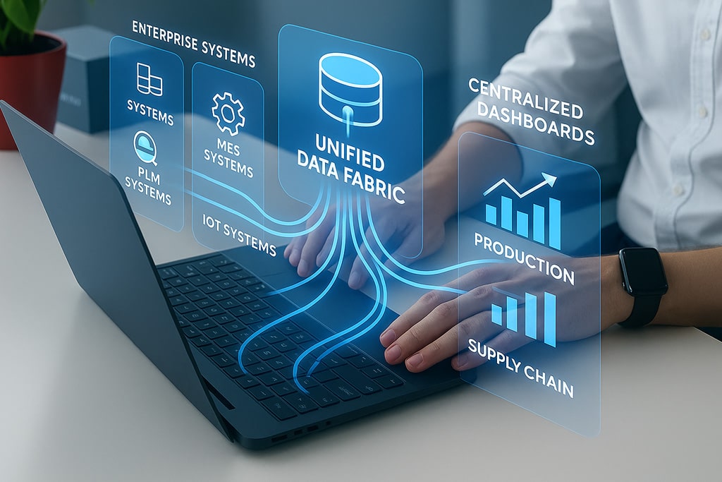 Manufacturers often deal with fragmented data across ERP, MES, PLM, and IoT systems, making it difficult to access real-time visibility and generate actionable insights.