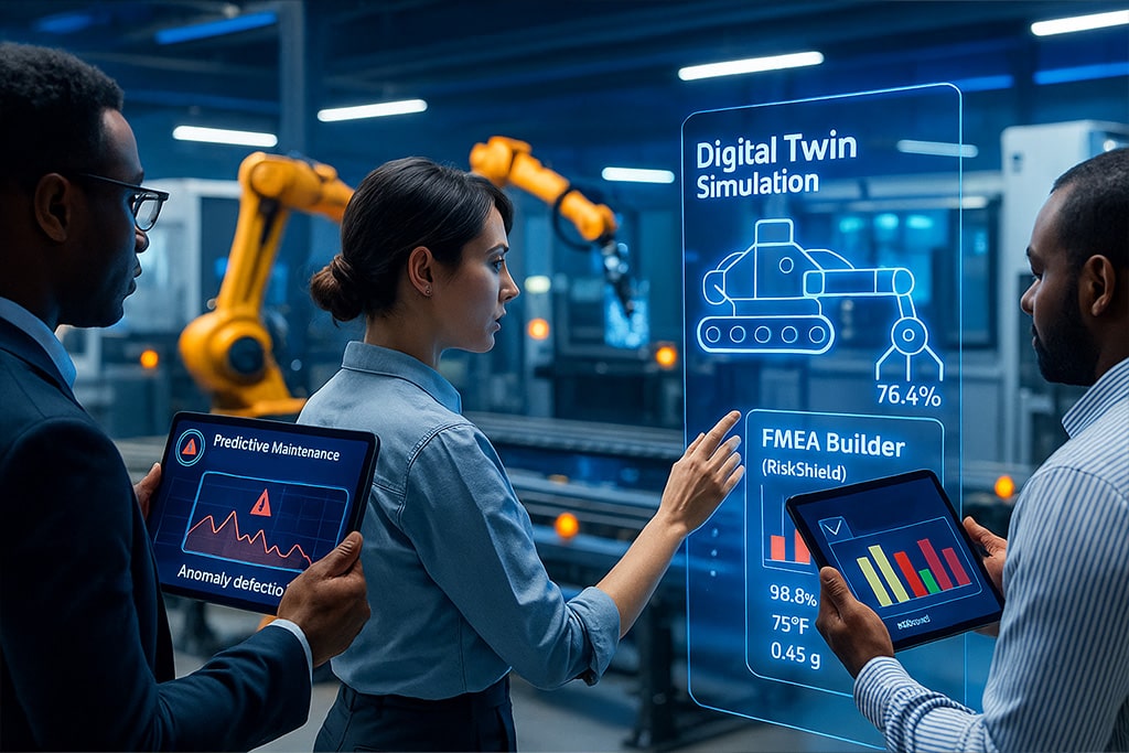 - FMEA Builder (RiskShield): Empowers manufacturers with proactive risk analysis and structured mitigation strategies, minimizing the impact of potential equipment or process failures.